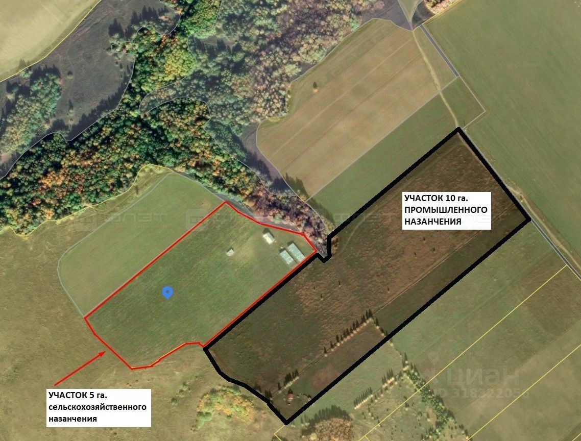 Рядом смежный участок 10 га - земли промышленности.