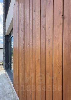 Облицовочная часть выполнена из мокрого фасада с элементами натурального планкена из лиственницы и искусственного камня.