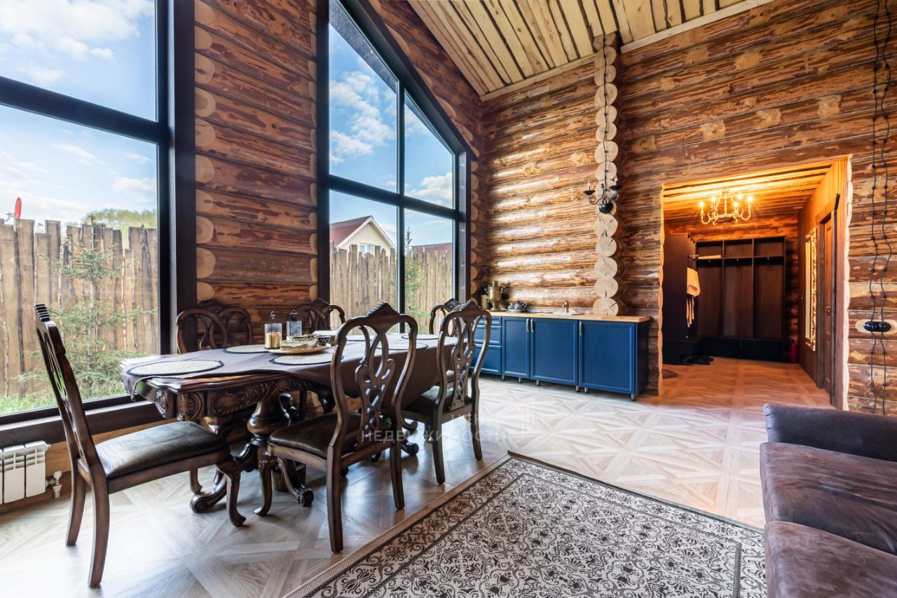 Бревенчатый дом имеет просторную и функционально продуманную планировку, где каждый уголок продуман до мелочей. Внутренний дизайн выполнен в стиле современной классики с элементами дерева, что создает особую атмосферу тепла и уюта. Все комнаты оформлены с использованием высококачественных материалов и техники.