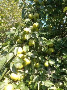 Участок ровный и хорошо освоенный. Есть крепкий каркасный парник и укрепленные грядки, но главное - это взрослые, замечательные плодовые деревья и кустарники: невероятно плодовитые деревья алычи, груши, яблони, вишни, сливы, боярышника... Кустарники: тернослив, малина, клубника, ежевика, смородина всех сортов, вкуснейший крыжовник, земляника и полезнейшая актинидия, и даже собственный виноградник! Урожай без особых хлопот превосходил все наши ожидания год за годом: изобилие свежайших вкуснейших живых витаминов (напомню - в пяти минутах от городских магистралей. Они рядом, но - там, далеко внизу. А вы - здесь, на самой вершине холма, где так легко дышится и живется!)