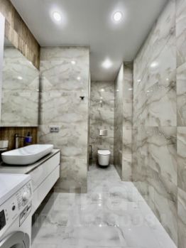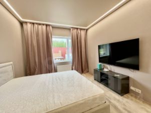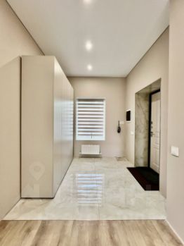 На первом этаже — огромная кухня-гостиная 37,7кв. с большими окнами, спальня 13,8кв., санузел 6,7кв. и гардеробная 2,7кв. По всему первому этажу сделан качественный Евро ремонт.