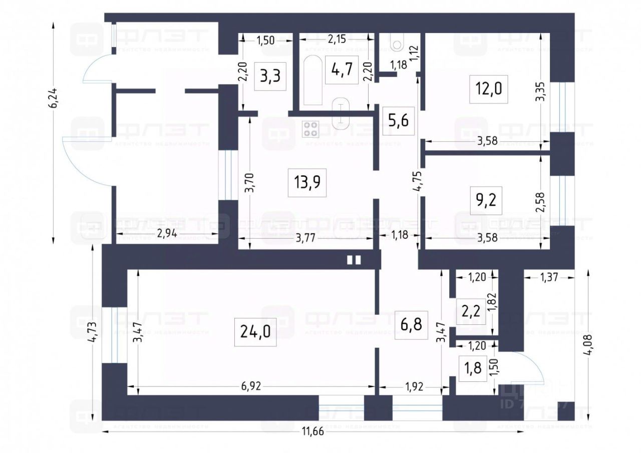 Просторная кухня 13,90 м.кв. и удобный коридор.