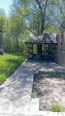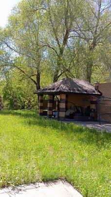 На территории построено барбекю, также сделана прорезиненная детская площадка.
