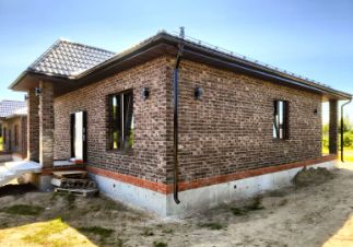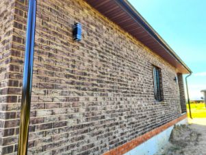 Стены: облицовочный кирпич + 10 см базальтовый камень в шахматном порядке + керамический камень 2.1НФ