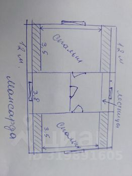 Мансардный этаж планировалось, две спальни 6/3,5 и одна 3/4 по центру.