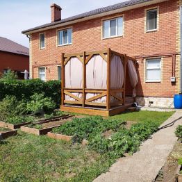 Участок 4 сотки полностью облагорожен:терраса,грядки, цветы, деревья, кусты, тандыр, очаг, небольшой сарай, дровеник,отличная деревянная баня,как из детства).
