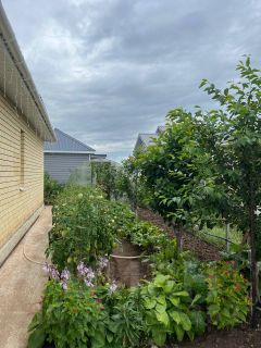 На территории дома ухоженный сад с разнообразными растениями и цветами, плодоносными деревьями:яблони, груши, айва, вишня, смородина, малина и т. д. ,а также застекленная терраса для отдыха . На участке имеются две теплицы длиной 6 и 4 метра, хоз блок для хранения инвентаря. Для удобства владельцев предусмотрены все необходимые коммуникации: водоснабжение от скважины, канализация — септик, отопление — газовое.