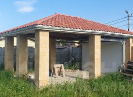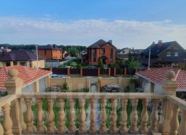 По периметру дома отмостка, асфальтированные дорожки до гаражей и входа на участок. Участок огорожен, спереди кирпичный забор с отделкой камнем, с калиткой и автоматическими гаражными воротами.