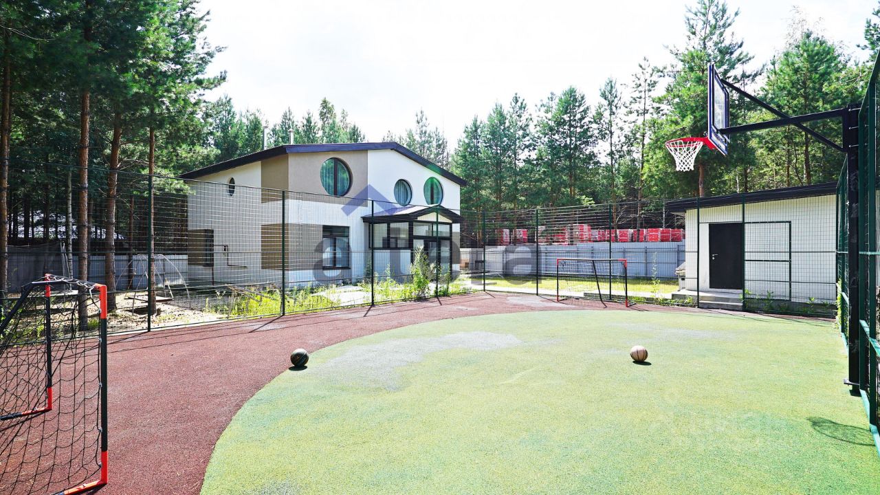 Дом с террасой идеально подойдет для приятных вечеров на свежем воздухе. Для активных жителей обустроена баскетбольная площадка, а также есть гараж с автоматическими воротами.