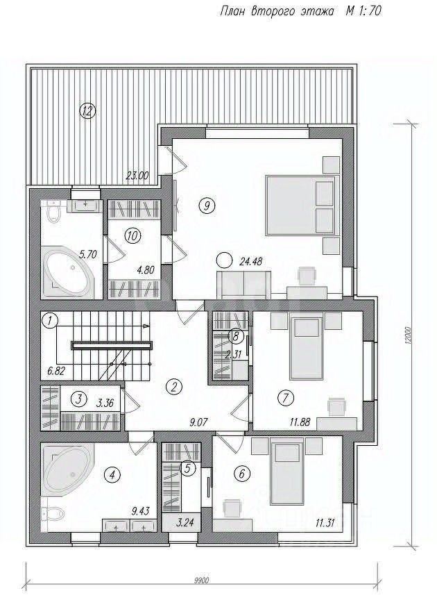 Площадь второго этажа 92.42 кВ.м
