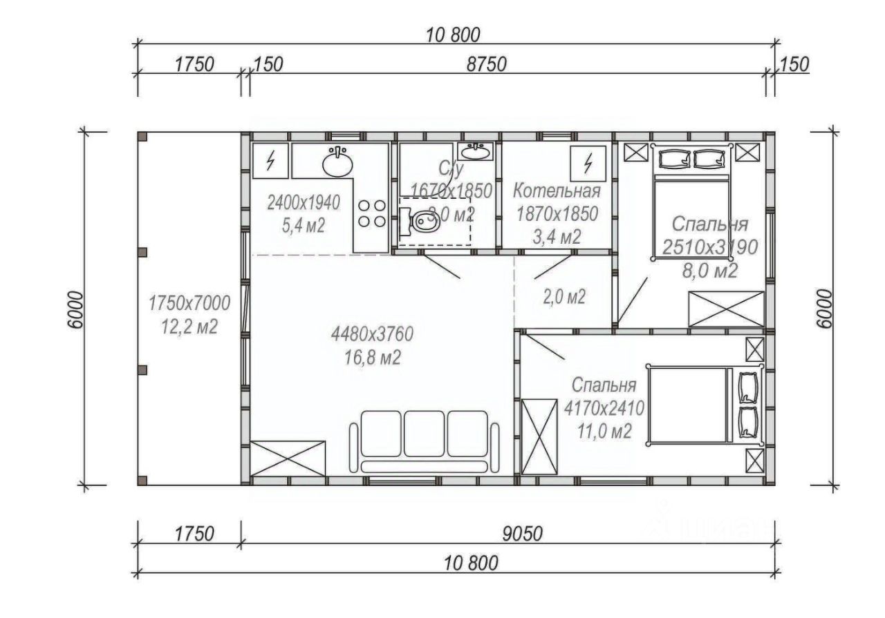 - 2 спaльныe комнaты