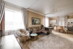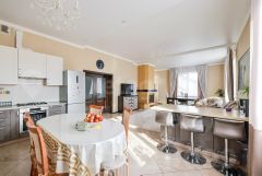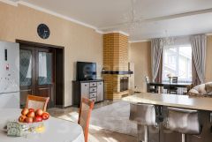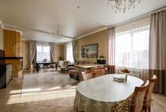 В доме сделан качественный ремонт из дорогих материалов. Высота потолка на первом этаже 3,4 метра. На первом этаже расположена огромная кухня гостиная площадью 52 кв.м. с настоящим камином и выходом на задний двор, где под крышей установлена мангальная зона, где вы сможете наслаждаться вечерами с семьёй и друзьями.