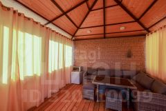 На большом участке площадью 13 соток уложена брусчатка по периметру, на парковочных местах, дома и до всех хоз.построек. Также есть огромная и при этом очень уютная остекленная терраса с зоной отдыха, баня и большой хозблок. Участок огорожен со всех сторон забором из профлиста и установлены откатные ворота.