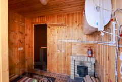 Также на первом этаже расположена гостевая спальня с эркером площадью 27 кв.м и большой санузел площадью 19 кв.м. Все коммуникации дома (котёл, трубы, регулировка теплого пола) смонтированы в отдельной нише, и при этом имеют свободный доступ.