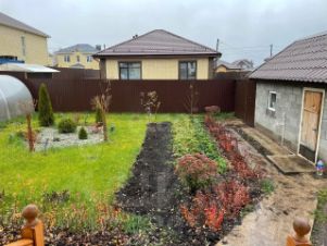 Участок с ландшафтным дизайном и дорогими декоративными растениями. На участке посажены плодородные деревья и кустарники. По периметру участок огорожен кирпичным забором, установлены ворота и заезд машины во двор. Также есть место для машин перед домом. Весь дом оснащен видеонаблюдением вокруг дома, что позволит Вам наблюдать с телефона за его сохранностью