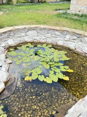 - Искусственный пруд, выложенный камнем