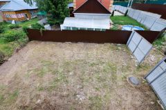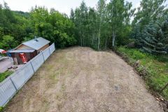 Участок 5.4 сотки тупиковый, соседи только с двух сторон, огорожен забором из профнастила, установлены ворота. Задняя часть участка упирается в лес, открывается шикарный вид на весь поселок.