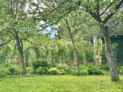 Участок ухожен, облагорожен, имеется теплица на усиленном каркасе, взрослые плодоносящие растения: яблони, смородина, вишня, шикарная крупная малина, виноград, много цветов, прекрасный ковровый газон.