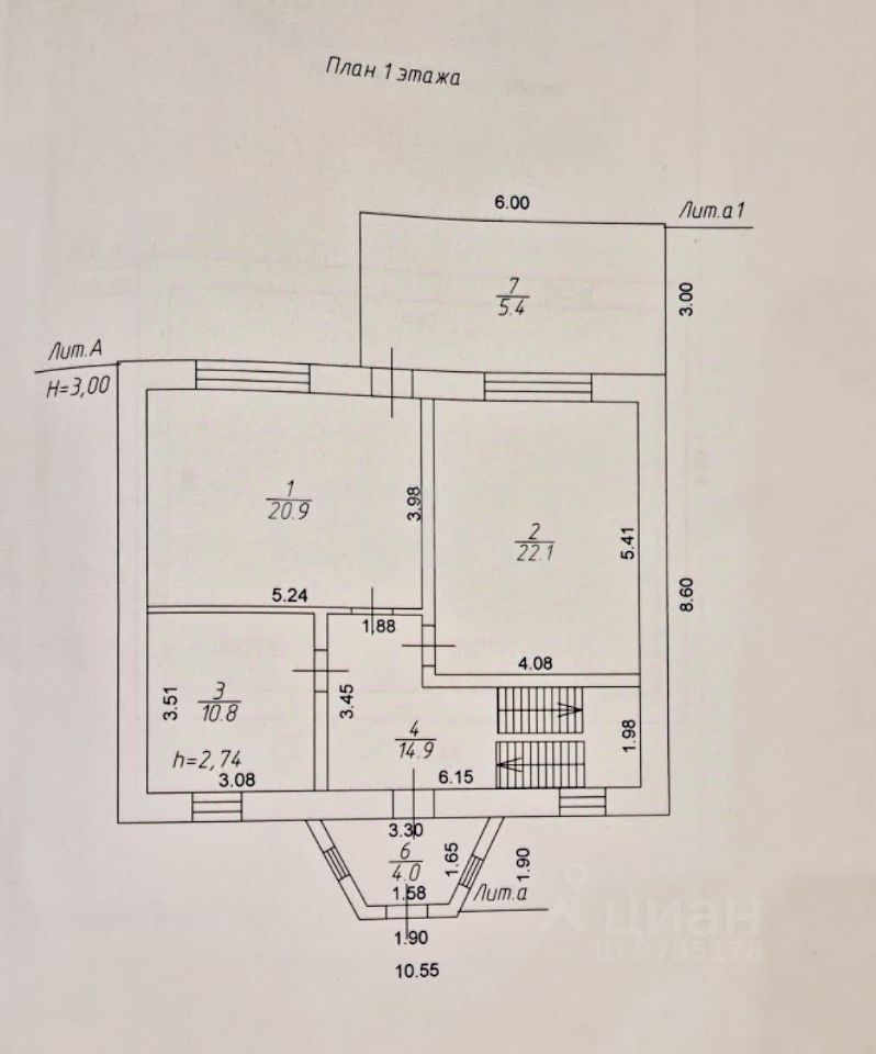 Лестничный холл 14,9м + теплый тамбур 4м;