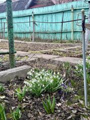 На участке дорожки залиты бетоном, а так же есть забетонированные разделения под грядки, все сделано с любовью .
