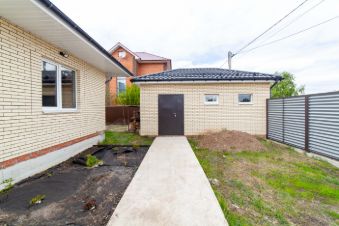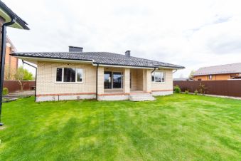 Одноэтажный дом из кирпича 148.6 кВ.м без чистовой отделки , расположен на ровном благоустроенном участке 10 сот , дом включает в себя 3 большие спальные комнаты , большой зал с витражным остеклением с выходом на террасу , кухня , котельная с заведеным газом , водой ( скважина) , два туалета, гардеробная .