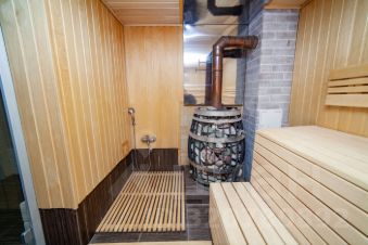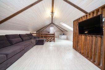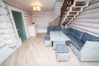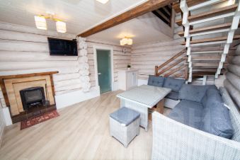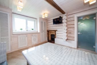 Гостевой дом из рубленого бревна 6*11 по фундаменту , 2 этажа , сдан для круглогодичного проживания , состоит из уютной комнаты отдыха , сауны на дровах , моечной зоны , туалета, кухня на втором этаже , большой комнаты зала на втором этаже .