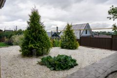 Очень правильное и комфортное деление территории в 49 соток на придомовую и садовую зону. Придомовая зона выложена брусчаткой. Ограждение полностью профнастил.