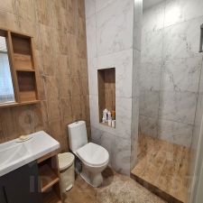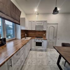 Дом 132кв м с крытой террасой. В доме сделан очень роскошный ремонт в светлых тонах, красивые добротные двери. Во дворе брусчатка. Много места для машин.
