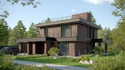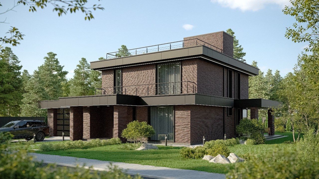 Продуманный проект визуально выделяется огромными панорамными окнами, благодаря которым в помещении приятный микроклимат, крыша эксплуатируемая (подразумевалось посадить газон, все нагрузки просчитаны и заложены в конструктив).