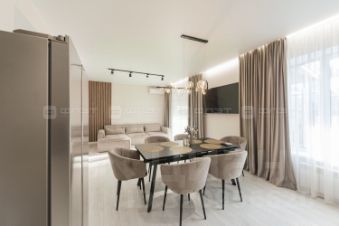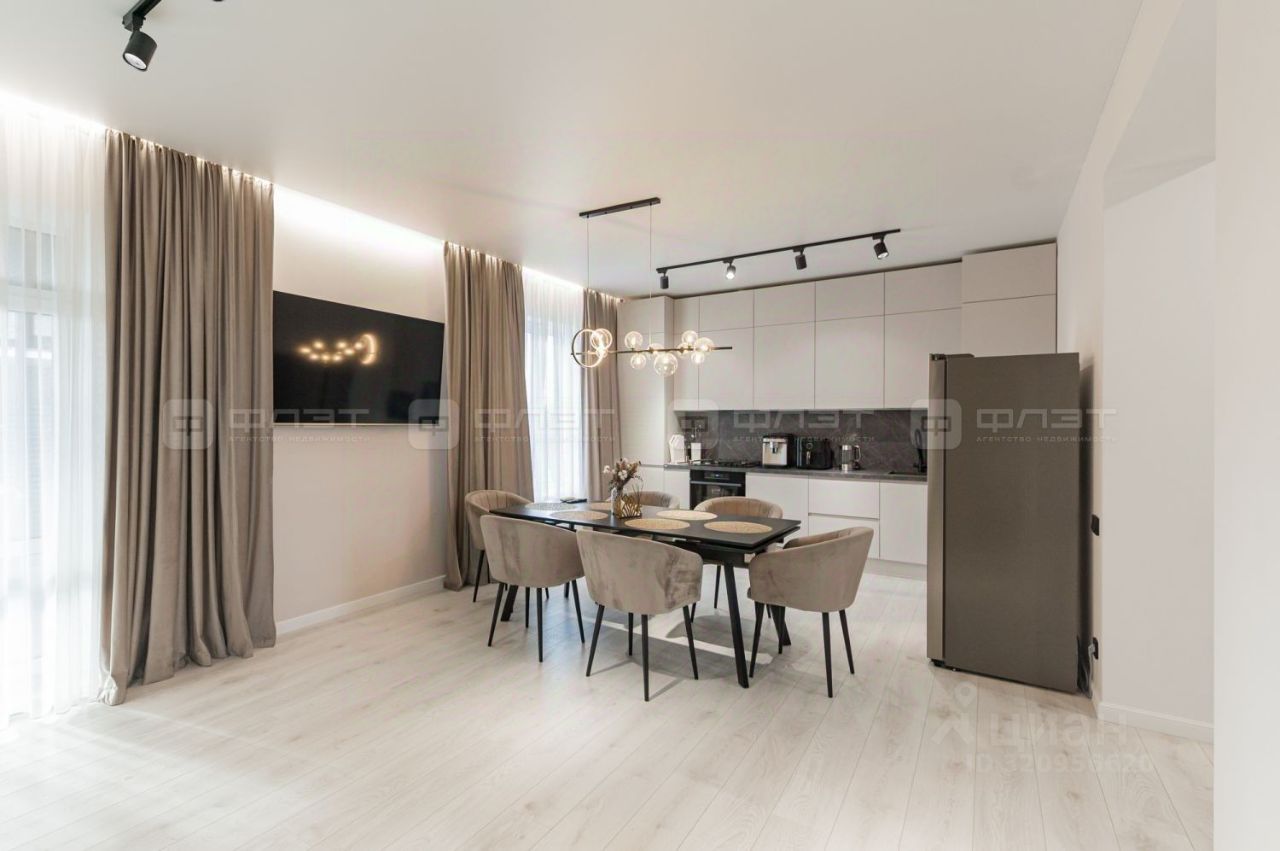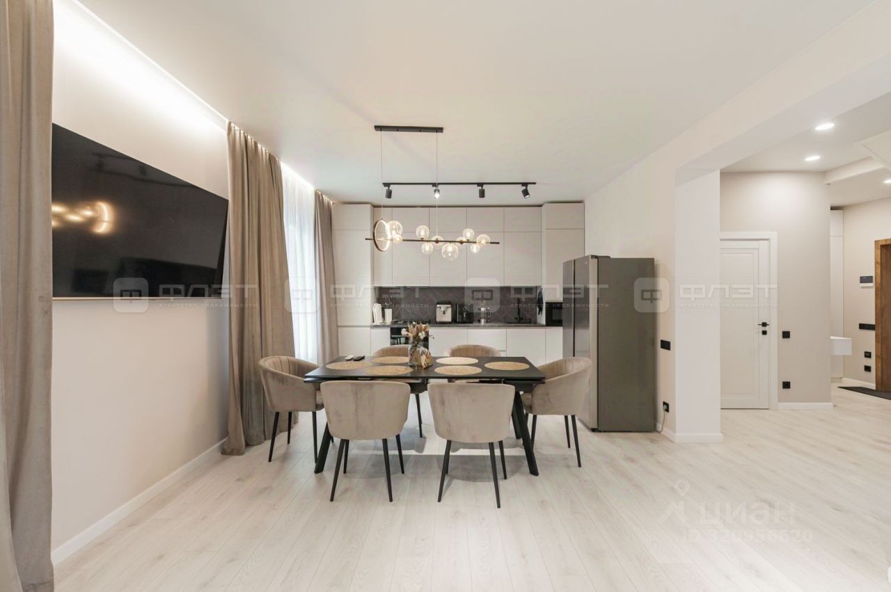 Объект 114990 Роскошный дом с современным ремонтом. Советский район г. Казани, коттеджный поселок "Султан Ай". Двухэтажный кирпичный дом 2021 г.п. Высота потолков на обоих этажах 3,01 метра. Площадь дома 141,2 кв.м., плюс терраса и крыльцо. Земельный участок 4,05 соток, ИЖС.