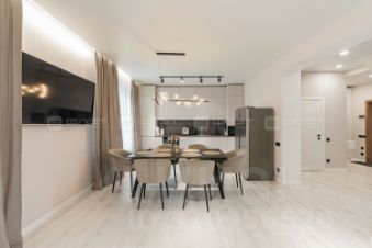 В доме новый дизайнерский ремонт, с использованием в отделке добротных и качественных материалов. Вся мебель при продаже остается. Кухонный гарнитур под потолок из эмали со встроенной техникой, немецкой мойкой и смесителем. Обеденный стол из итальянского керамогранита. В доме установлена профессиональная система очистки и умягчение воды (скрыт внутри шкафа в санузле на первом этаже). Отдельно установлен фильтр для питьевой воды. Лестница выполнена из ясеня. Большая закрытая терраса с раздвижной дверью. Мебель из ротанга. Вечерами можно смотреть на проекторе фильмы, играть с большой компанией в РlаyStаtiоn.