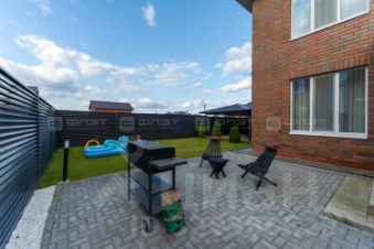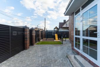 Ровный участок 4 сотки, рулонный газон, автополив, а также брусчатка по всему периметру. Посажены туи как внутри, так и вне участка перед домом. Участок огорожен шикарным забором по всему периметру из ламелей (жалюзи) в двухстороннем окрасе редкого оттенка (rаl 8019). Откатные ворота 4 метра. Навес сделан на 2 машины размером 11 метров на 4 метра. Есть место для дополнительной постройки бани совместно с фурако. Отдельно поставлена на участке детская площадка из дерева сделанная под заказ.
