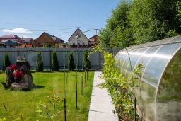 -Пространство между домом, баней, беседкой выложены бетонными дорожками.