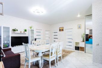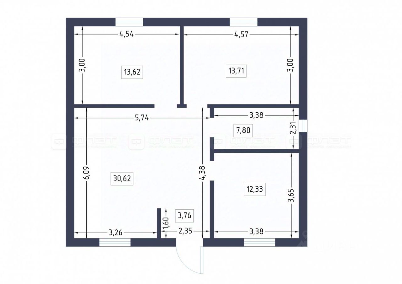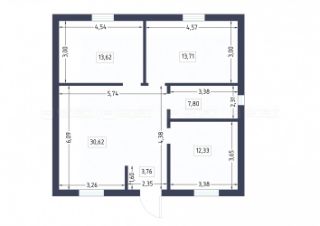 Планировка: общая площадь 85 кв., жилая площадь 54.66 кв., квадратная кухня - студия, 3 спальни и просторный санузел.