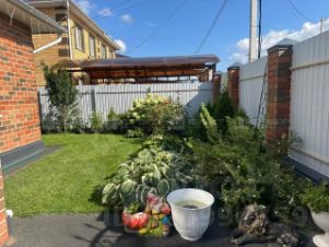 Участок 4 сотки, правильной формы. На участке газон, растут плодовые кустарники и деревья, баня, хоз.блок, теплица, машиноместо под навесом.