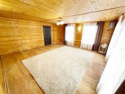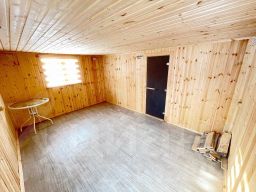 Большая комната на первом этаже обшита, напольное покрытие - ламинат.