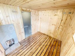 Общая обшивка в основном помещении и на втором этаже пластиковые панели,