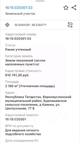 Кадастровый номер: 16:15:020301:33 (ИЖС)