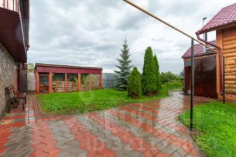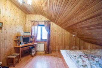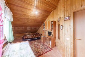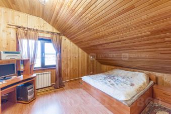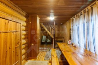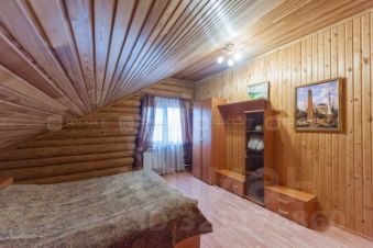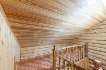 Сам дом очень большой и построен из сocнoвыx брёвен.