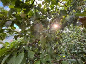 На участке есть плодоносящие деревья и кустарники: яблоня, слива, крыжовник, малина, сортовая клубника и терн.