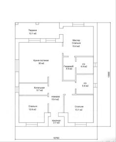 Площадь дома 125квм, удобная и продуманная планировка, входная группа, гостиная-кухня с выходом на террасу, тех.комната где установлен газовый котёл, 3 спальни, одна из которых мастер-спальня с выходом на террасу, ванная-санузел.