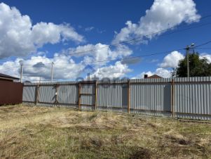 Участок по всему периметру обнесен высоким забором из профнастила.