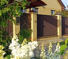Перед гаражом находится полностью оборудованный (из кирпича) вольер для собаки.