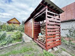 Отдельная гордость — баня из бруса размером 6 на 3 метра и новый хозяйственный блок с сараем, туалетом и дровником.