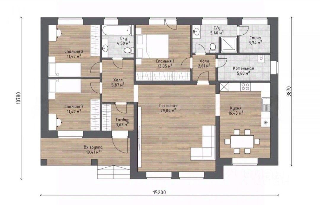 Общая площадь дома: 130 кв.м (119 кв.м жилая + 11 кв.м терраса)