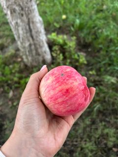 Из насаждений 3 взрослые яблони, красный крыжовник, крупная смородина, много сортовой, крупной, сладкой малины, крупная ирга, молодой белый виноград (уже дает плоды), клубника. Большое количество роз, которые цветут все лето, пионы, клематис, сортовая сирень. И конечно же украшение дачи высокая сосна, а воздух..