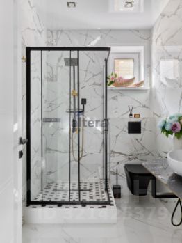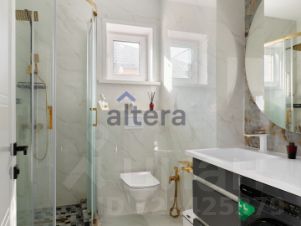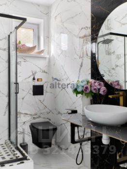 Совмещенный санузел выполнен в стильном дизайне и оснащен современной сантехникой, что добавляет удобства в повседневную жизнь.