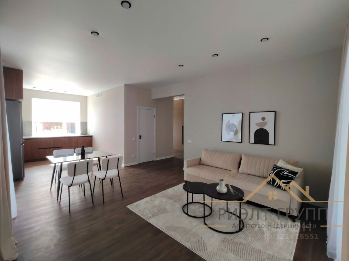 Три большие спальные комнаты, кухня-гостиная с двумя выходами на террасу, прихожая, большой санузел и , котельная.