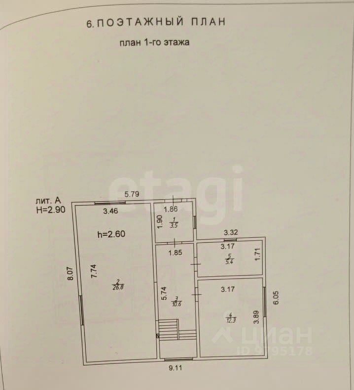 Высота потолка 1-го этажа -2,6 м, потолка мансарды-2,5 м.
