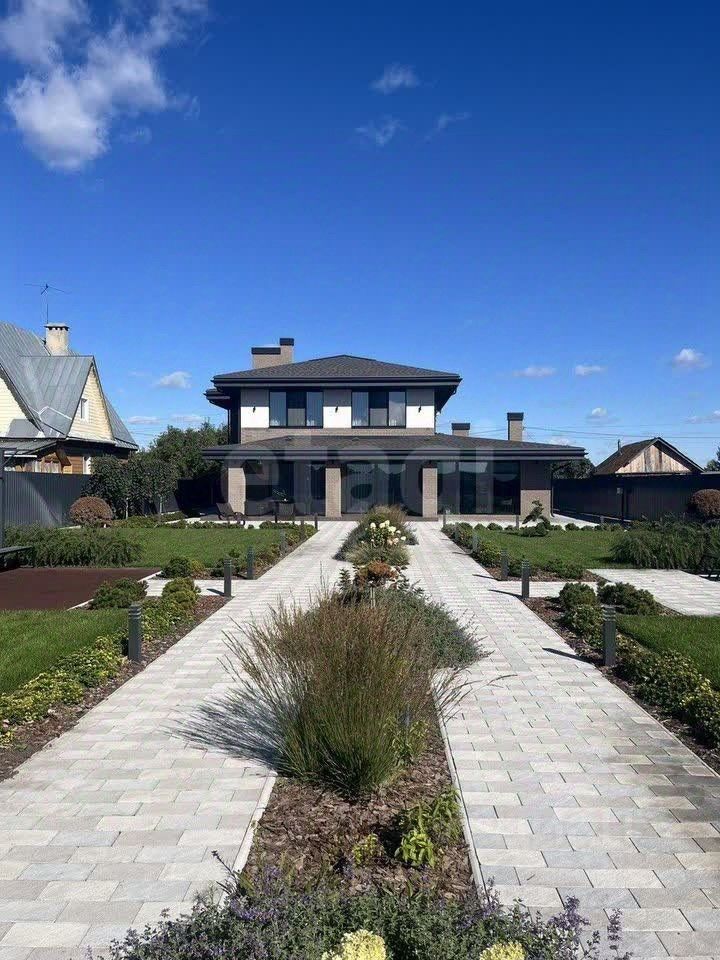 На территории гараж на 2 машиноместа, навес для 3 машин, видеонаблюдение, установлена система автополива.